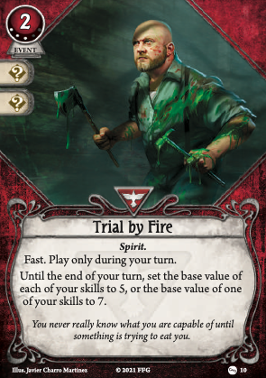 When I look at this my first thought is a backup 'weapon' for Nathaniel Cho with Boxing Gloves. Sometimes he needs to swing twice in a round for bonus damage, or he's run out of fight events later in a scenario. Brand of Cthugha gives a good backup in an uncontested slot and it can make use of the bonus fight from Boxing Gloves. All-in-all there's a lot to like here for 1xp and Brand of Cthugha(4) is just even more of it later on.